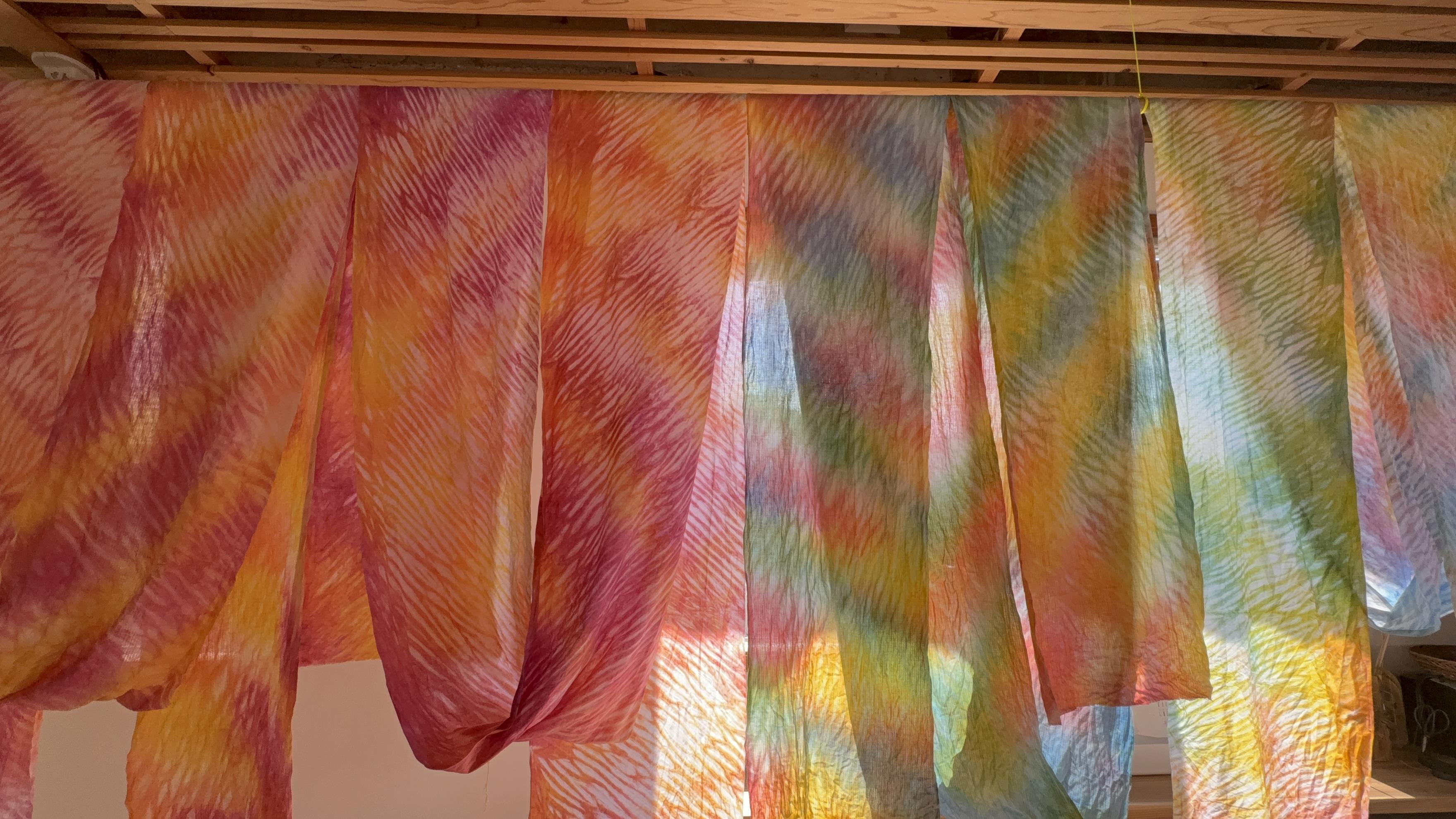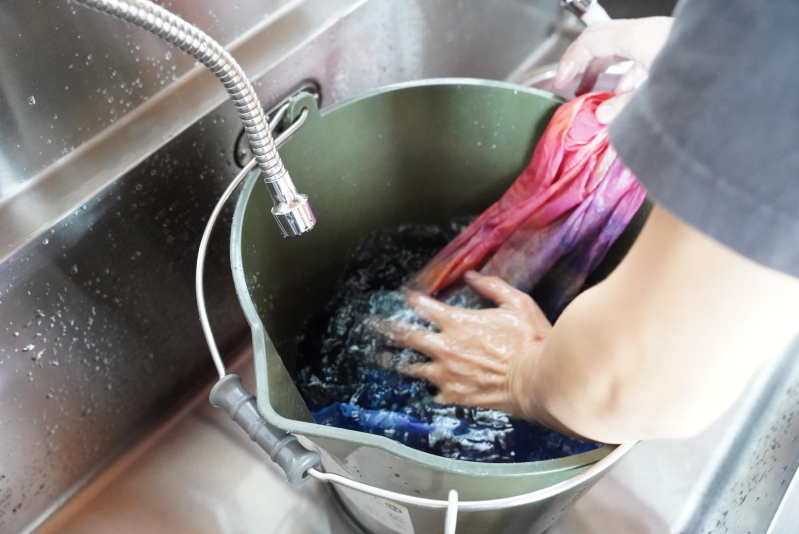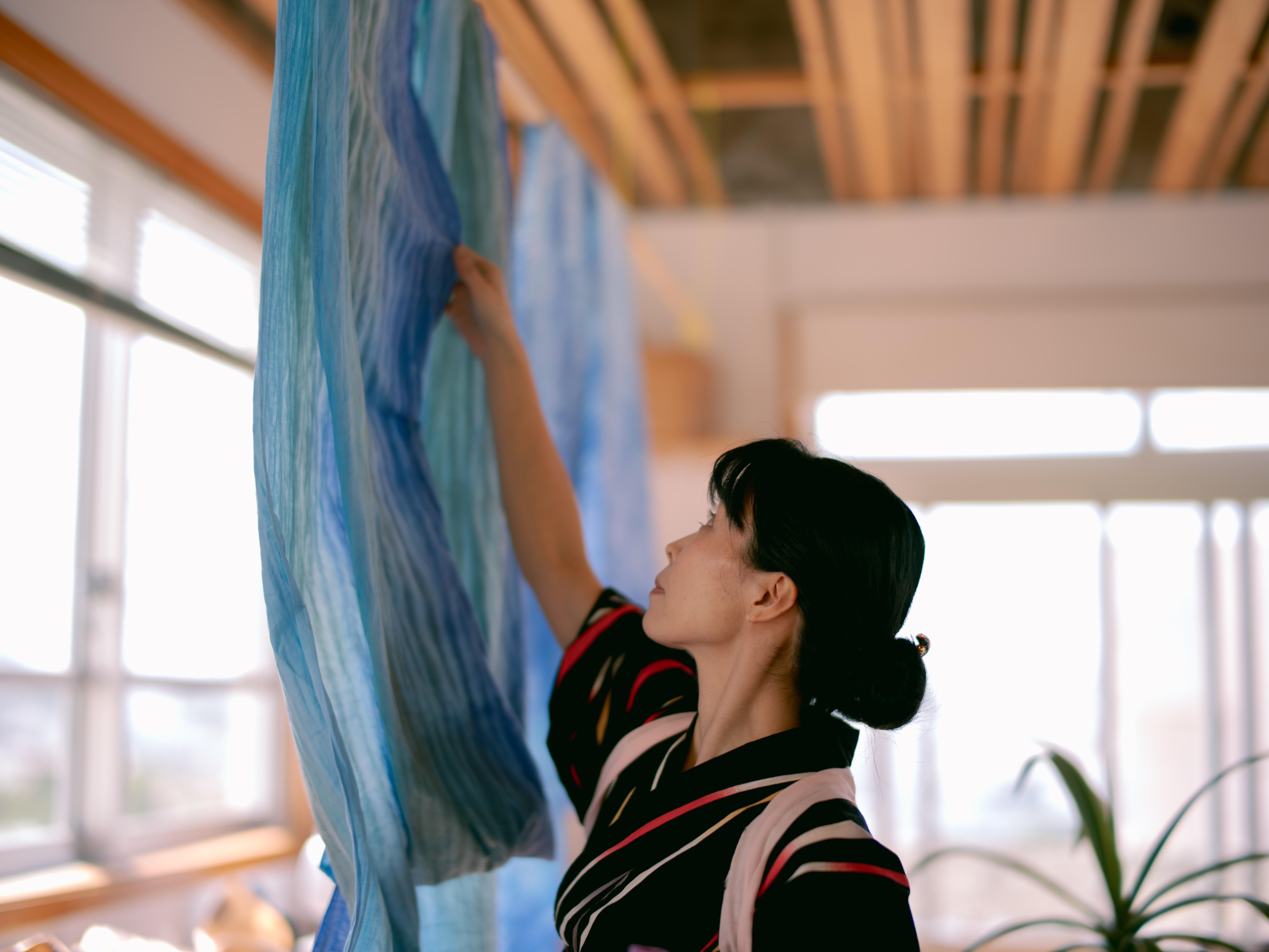 すべて手仕事で丁寧に染め上げる、一点物のさらし。